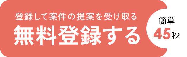 - WEB上には公開できない案件・求人情報が多く存在しています。その他、特に良い案件はサイトに公開する前に決まってしまうケースも非常に多いため、まずは一度弊社でご登録・カウンセリングをしていただくことをお勧めいたします。